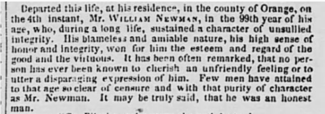 William Newman’s parents: Elias Newman & Ann
