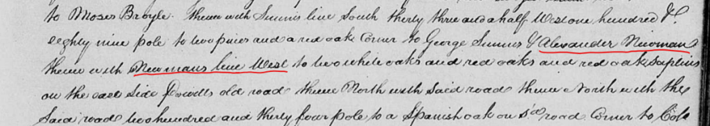 William bought 106 acres beside Alexander Newman, the year before he before he was married. I’m not yet sure if this Alexander was William’s father or brother.